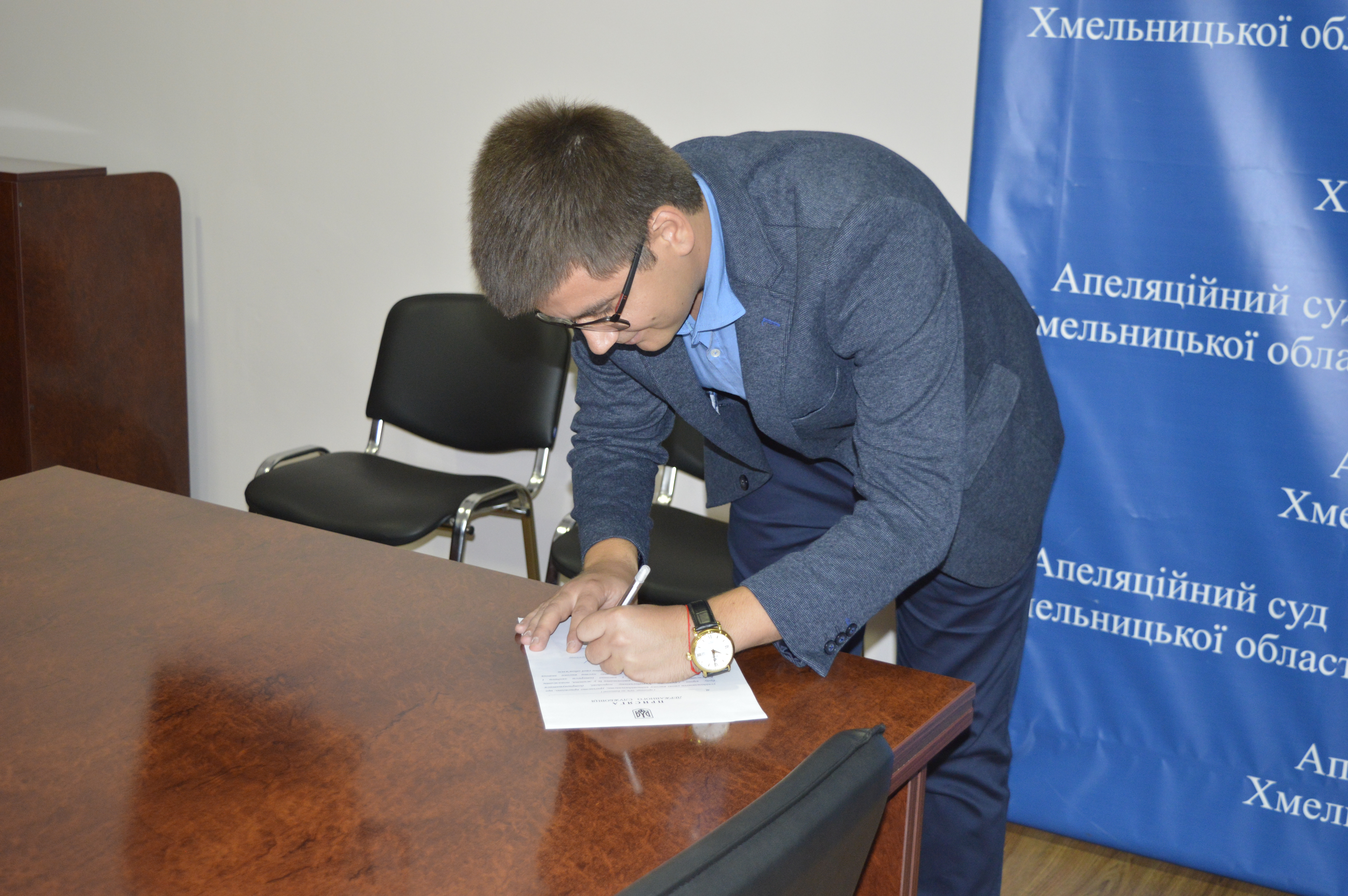 Привітав новачків керівник апарату суду Геннадій Крупельницький. Він ще раз наголосив на відповідальному ставленні до своїх посадових обов’язків і побажав бути гідними високого статусу працівника суду.